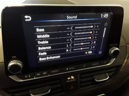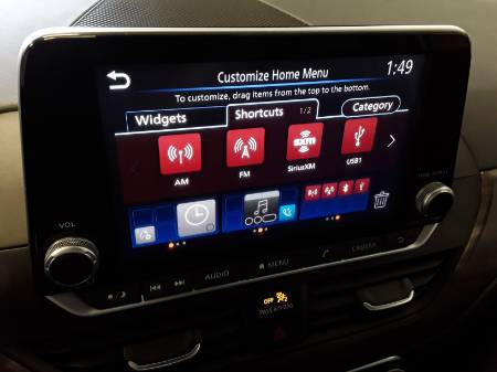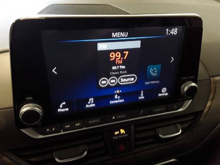 - Radio: AM/FM Audio System -inc: RDS, MP3 and aux-in, 6 speakers, NissanConnect featuring Apple CarPlay, Android Auto, 8″ color display w/multi-touch control, 1 front illuminated USB port (type-C) for compatible devices, SiriusXM radio, Bluetooth hands-free phone system, streaming audio via Bluetooth, hands-free text messaging assistant, Siri Eyes Free and Google Assistant voice recognition
