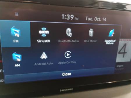 - Radio: AM/FM Display Audio -inc: 10.25″ display screen, SiriusXM, HD Radio, Bluelink connected car system, navigation system w/Over-the-Air (OTA) map updates, dynamic voice recognition, Apple CarPlay and Android Auto, Bluetooth hands-free w/wireless audio streaming, steering wheel audio and phone controls, USB ports and rear seat quiet mode